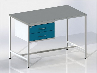 Стол лабораторный с 2-мя выдвижными ящиками, цельносварная конструкция, полимерно-порошковое покрытие.  Столешница  металла с полимерно-порошковым покрытием.